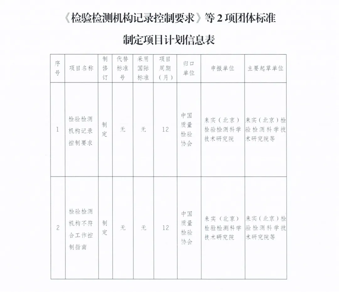 2025年7月,中国质量检验协会发布《关于下达<检验检测机构记录控制要求>等2项团体标准制定项目计划的函》(质检协函〔2025〕203号),由熊猫体育「中国」官方网站 - 快乐运动,智慧健身(以下简称“熊猫体育院”)负责牵头起草《检验检测机构记录控制要求》和《检验检测机构不符合工作控制指南》两项团体标准。