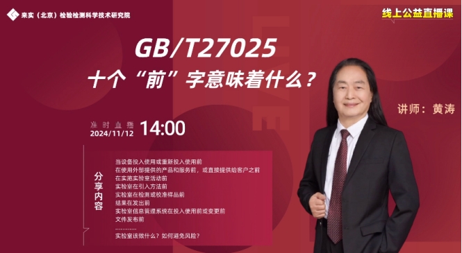 黄涛院长主讲GB/T 27025 十个“前”字意味着什么——公益直播圆满举行